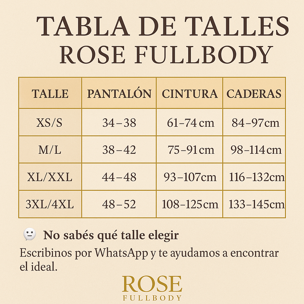💡 Consejo: Si estás entre dos talles, elegí el más grande para mayor comodidad. El material tiene alta elasticidad y recuperación.